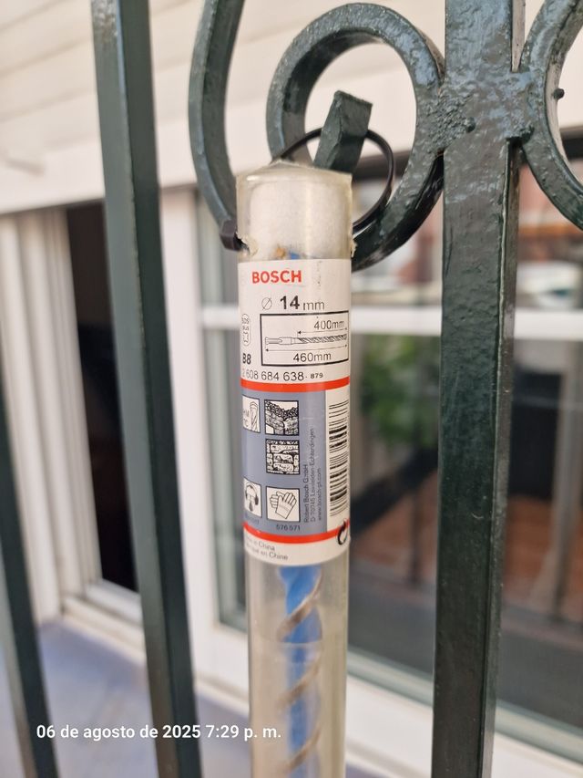 Broca Bosch para hormigón de 14 mm de diámetro. Está prácticamente nueva solo se ha usado una vez. - Longitud total: 460 mm. - Longitud útil: 400 mm. - Marca: Bosch