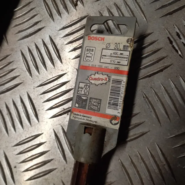Broca SDS Max Bosch con un diámetro de 30 mm. - Diámetro: 30 mm - Longitud: 450 mm - Longitud útil: 570 mm - Modelo: Quadro-X - Fabricado en Alemania
