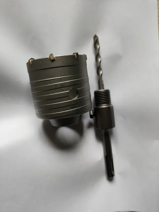 Broca tipo corona con un diámetro de 65mm y un husillo de 10cm. - Material: Metal. - Color: Plateado.