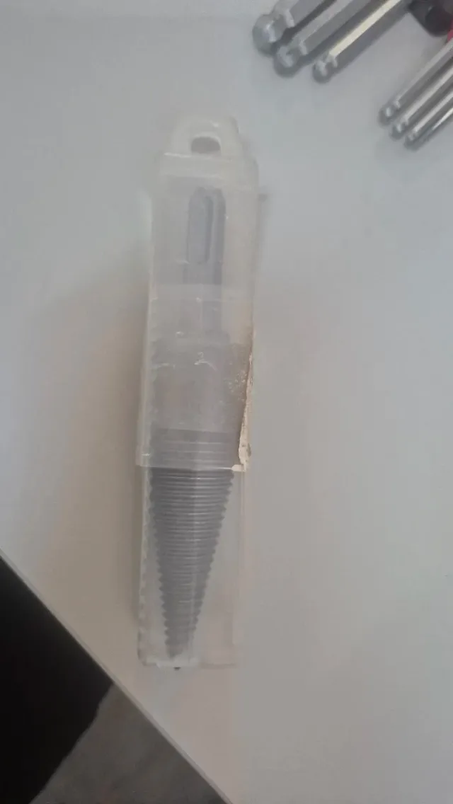 Broca especial cónica para trabajos de metalurgia. Se encuentra en su estuche original. - Diseño cónico. - Material metálico.