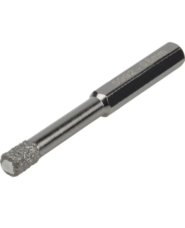 wolfcraft Broca para taladrado en seco recubierta de diamante, vástago hexagonal, Ø 8 mm I 5992000 I Para taladrar en seco azulejos, gres fino y cerámica.