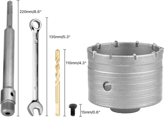 Juego de brocas SDS Plus de 95 mm, rosca M22 SDS Plus, adaptador de 220 mm y broca de centrado de 8 x 110 mm, para mampostería, piedras naturales, areniscas, piedras artificiales, hormigón