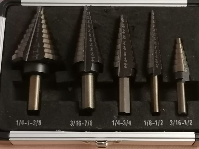 Detalles del productoSet de 5 brocas escalonadas de espiral. Son herramientas versátiles para hacer agujeros de diferentes diámetros.