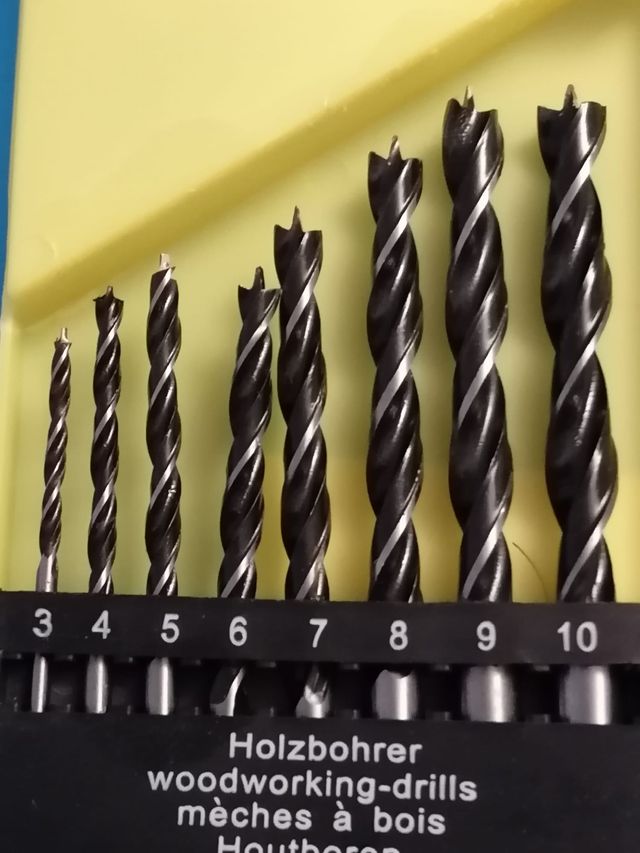 Detalles del productoSet de 8 brocas para madera de alta calidad, de 3 mm a 10 mm; ideales para trabajos de carpintería. Incluye medidas variadas para diferentes necesidades.