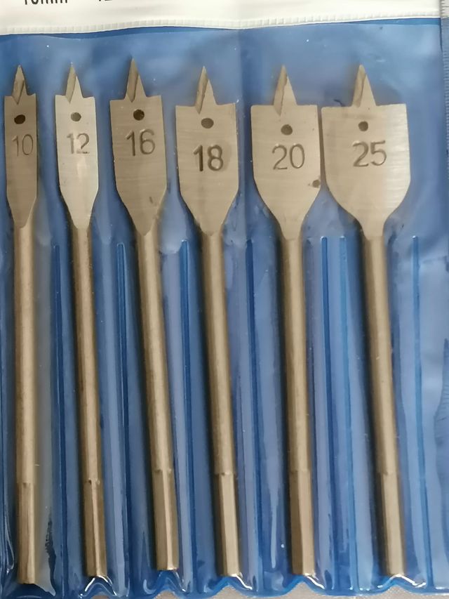 Detalles del productoSet de 6 brocas planas para madera, ideales para trabajos de carpintería y bricolaje. Cada broca tiene un tamaño diferente para adaptarse a diversas necesidades. Brocas de 10mm, 12mm, 16mm, 18mm, 20mm y 25mm. Fabricadas en metal resistente.