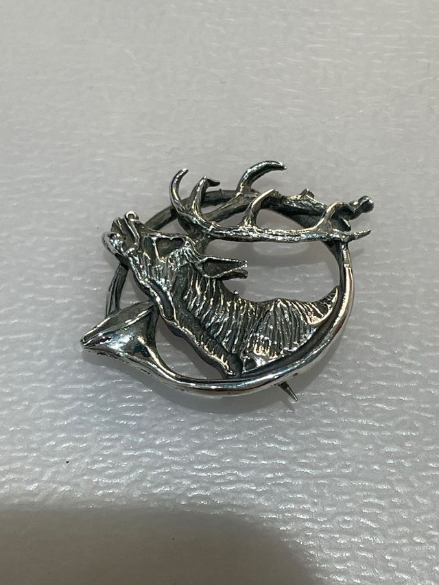 Broche caza ciervo con trompa plateado vintage