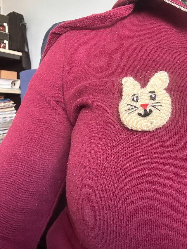 Broche de Gato Tejido Beige y Rojo