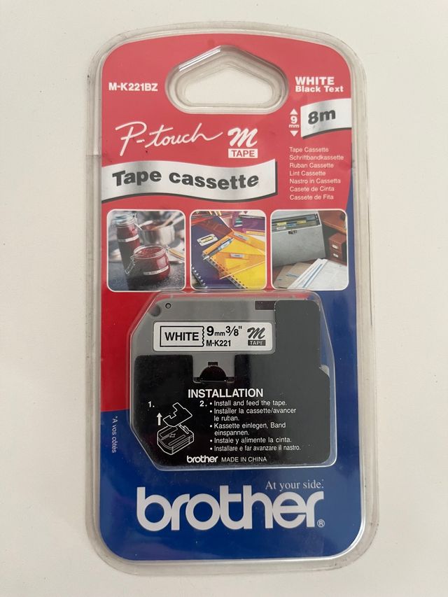 2 unidades de Brother P-touch tape cassette M-K221BZ white black text 9mm 3/8”