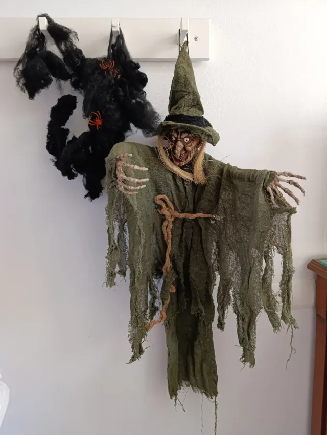 Detalles del productoFigura de bruja decorativa para Halloween. Perfecta para colgar y dar un toque espeluznante a tu decoración.