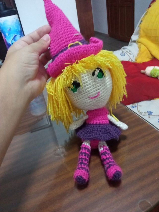Detalles del productoMonísima brujita tejida a crochet, ideal para decorar o regalar. "Brujita Tati"