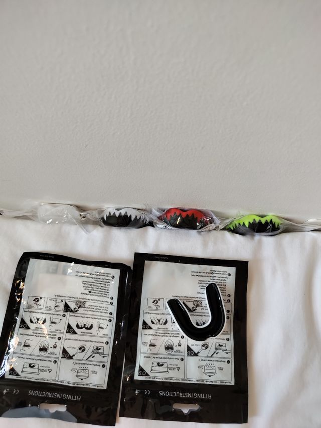 Detalles del productoVendo protectores bucales para practicar deportes de contacto. Son tres unidades de diferentes colores, nuevos y sin usar. - Vienen en sus respectivos paquetes individuales con instrucciones. - Se ven resistentes y de buena calidad. - Ideales para boxeo, artes marciales mixtas (MMA) y otros deportes.