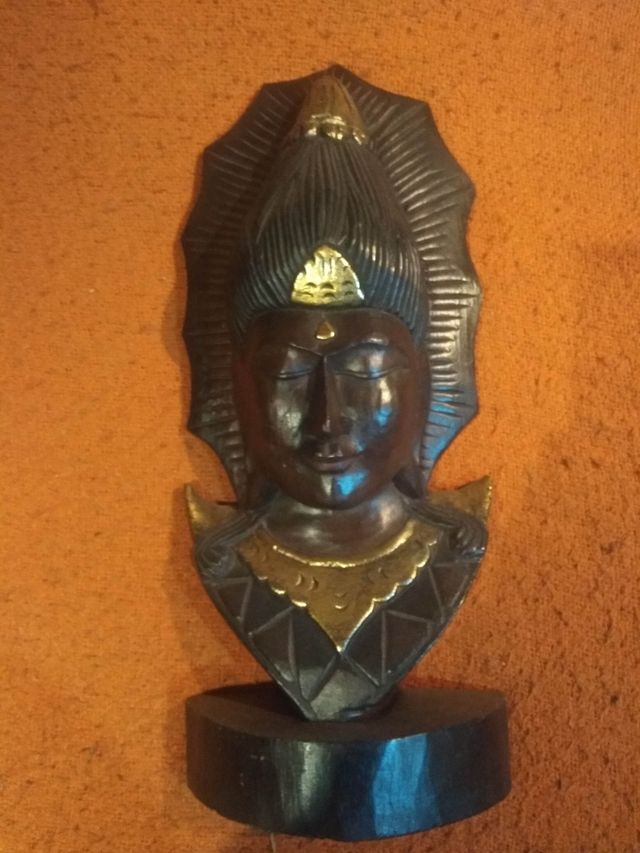 Detalles del productoBuda tallado en madera artesanal. Busto de Buda. Mira mi perfil. Medidas del producto