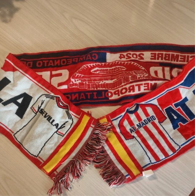 Detalles del productoBufanda conmemorativa de los equipos Atlético de Madrid y Sevilla FC, del 8 de diciembre del 2024, del campeonato de liga ⚽️.