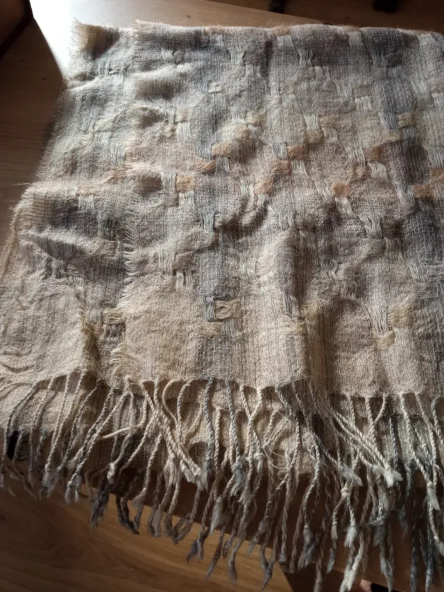 Bufanda beige y gris con flecos