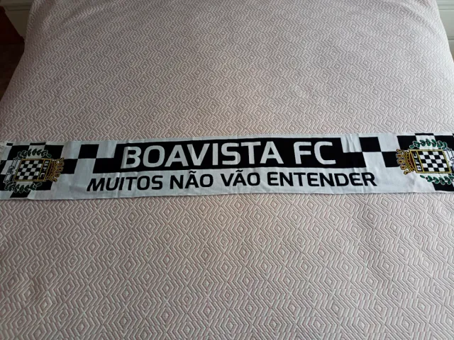 Bufanda del Boavista FC con el lema Muitos não vão entender. - Diseño a cuadros en blanco y negro. - Escudo del club en los extremos.