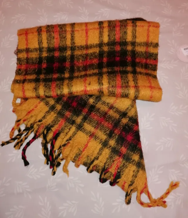 Bufanda de cuadros lana amarilla y roja