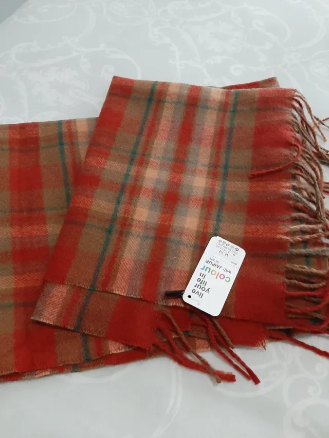 Bufanda de cuadros marrón y roja