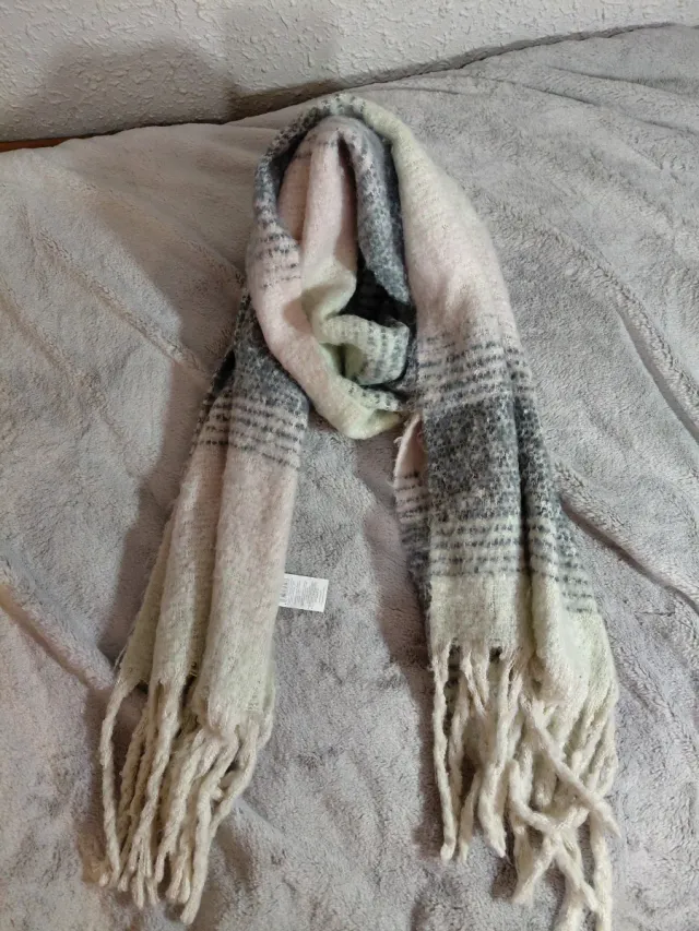 Bufanda Maxi Plaid Rosa/Gris/Blanco