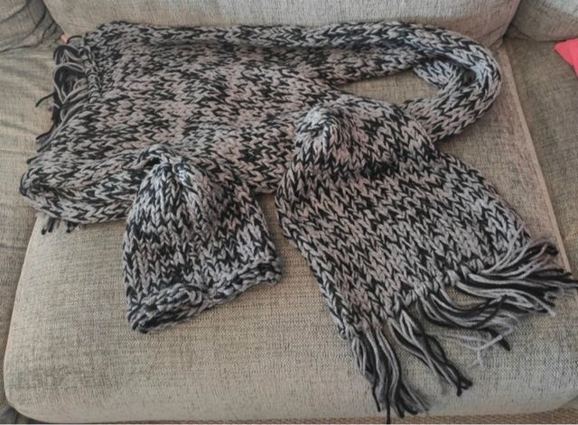 Bufanda y Gorro Tejido Negro Gris