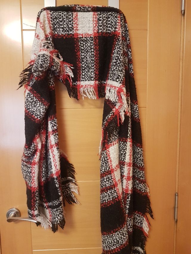 3 bufandas overside, 1 beige, 1 de cuadros blanca, roja y negra, 1 de camuflaje. 4 € cada una o 10 € el lote de las 3. Sin apenas uso