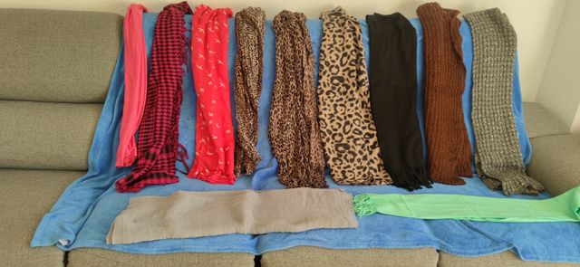 Bufandas y pañuelos, hay de invierno y otros más finos, tengo 11 de diferentes y se venden a 1 € cada uno, vendo juntos o separados