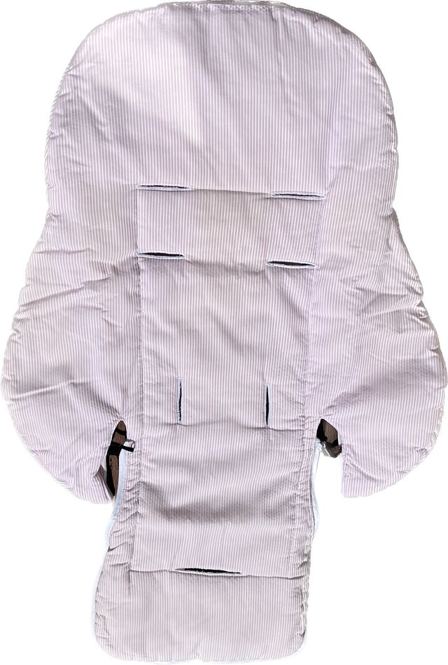 Funda silla, funda capota y saco a rayas rositas y blancas