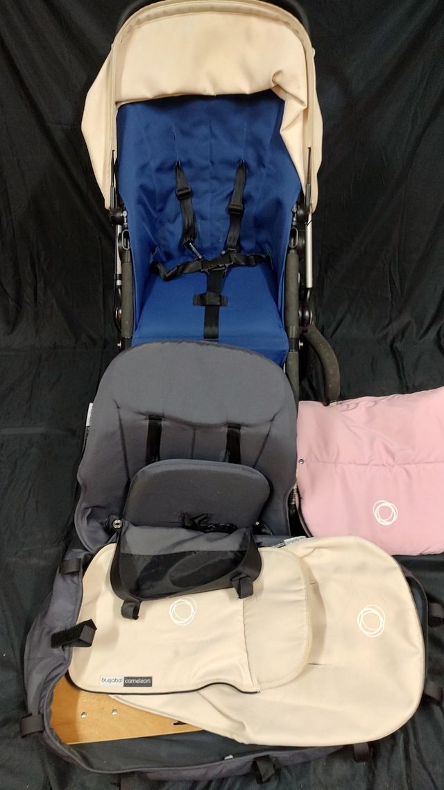 Detalles del productoBugaboo Camaleón 2, en perfecto estado. Incluye silla de paseo en azul marino y en gris, estructura y fundas de capazo, respaldo de verano en color crema, saco de invierno original en color rosa claro, plásticos de lluvia.