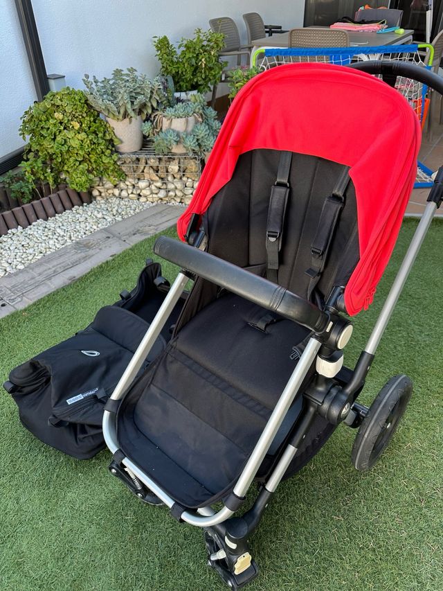 Detalles del productoCochecito Bugaboo Camaleón de capote rojo con funda para lluvia en perfecto estado, solo tiene muestras de uso en las empuñaduras. Todo funciona genial, es muy practico y de muy buena marca. Sirve desde recién nacido hasta los quatro años.