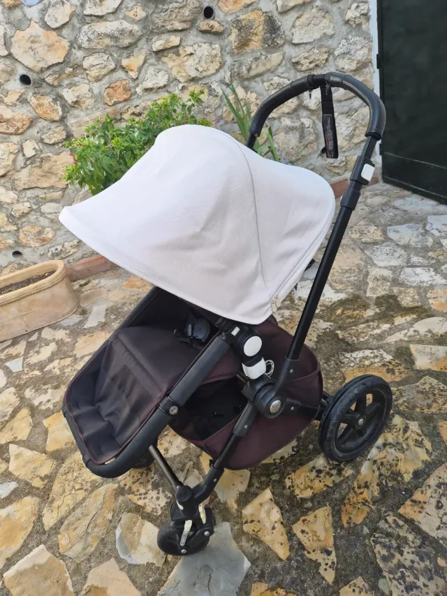 Detalles del productoSilla de paseo Bugaboo Cameleon 3 en color negro con capotas negra y beige extensibles.