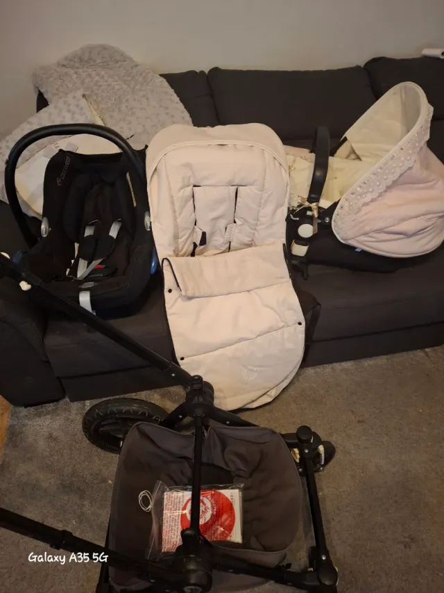 3 sacos para silla, con capotas a juego, combinables entre sí, y también capotas Regslo manillar cuero sin estrenar para silla original bugaboo y saco polar color beige