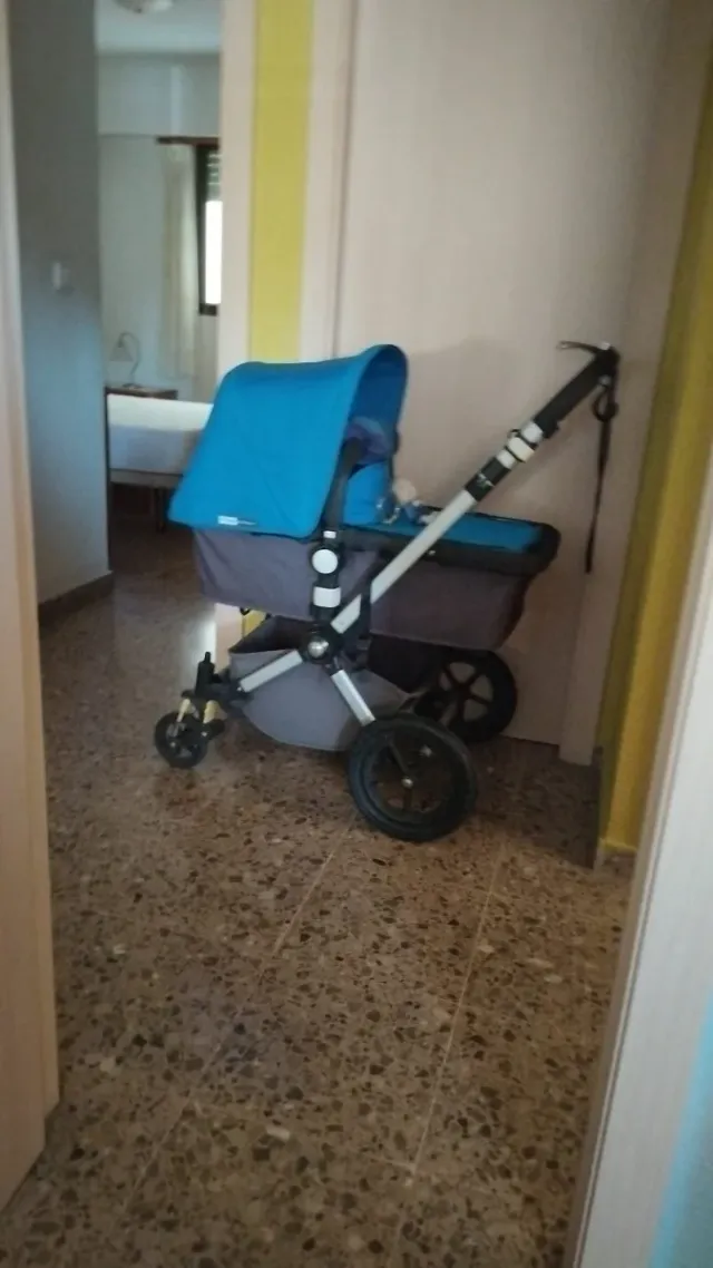 Detalles del productoCarrito de bebé Bugaboo en color azul y gris. Ideal para paseos cómodos.