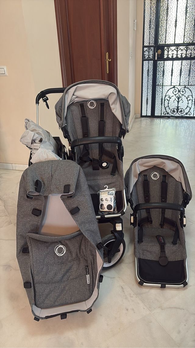 Carrito Bugaboo Donkey 3. - Chasis de aluminio. - Capazo y silla. - Capota gris melange. - Incluye accesorios.