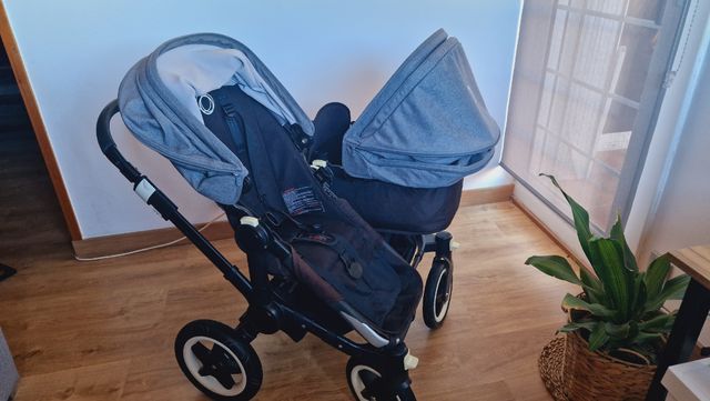 Detalles del productoEn muy buen estado, lo hemos ido cuidando y actualizando. Con el paso de los años hemos ido cambiando algunos complementos (capotas extensibles 2017, cesta inferior 2023, cesta lateral 2020 y las ruedas traseras por las nuevas rígidas). Las opciones de combinación son: 1 cuco bebé + 1 silla niño, 2 sillas niños, 1 cuco bebé + cesta lateral, 1 silla bebé + cesta lateral. Además 1 capota de lluvia y el adaptador para poner un patinete. Se tendría que cambiar la espuma del manillar que está abierta, pero es puramente estético, no funcional. Está recién lavado. Se puede ver sin compromiso. Acepto ofertas.