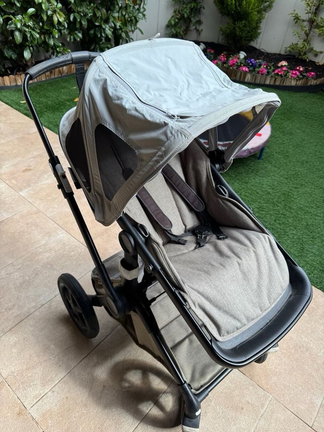 Detalles del productoCarrito bugaboo fox 3. Color topo. Sillita de paseo y capazo incluido. La capota original es del mismo color topo que el carrito. Y además Regalo la capota ventilada de verano en color gris clarito (la que sale en la foto). Mosquitera y funda de lluvia tambien incluidas. Medidas del producto