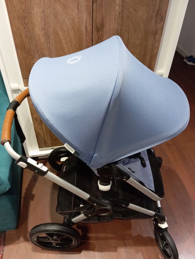 Detalles del productocarro Bugaboo Fox con silla y capazo, freno con pedal, ruedas delanteras con sistema fijo o rotativas, neumáticos traseros grandes para senderos más complicados (todos las ruedas se pueden sacar),correa para arrastrar,mecanismo para plegar el carro tanto en el manillar como en la barra central donde va sujeta la silla y cesta inferior, capota extensible y cinturones para la sujeción del bebé.