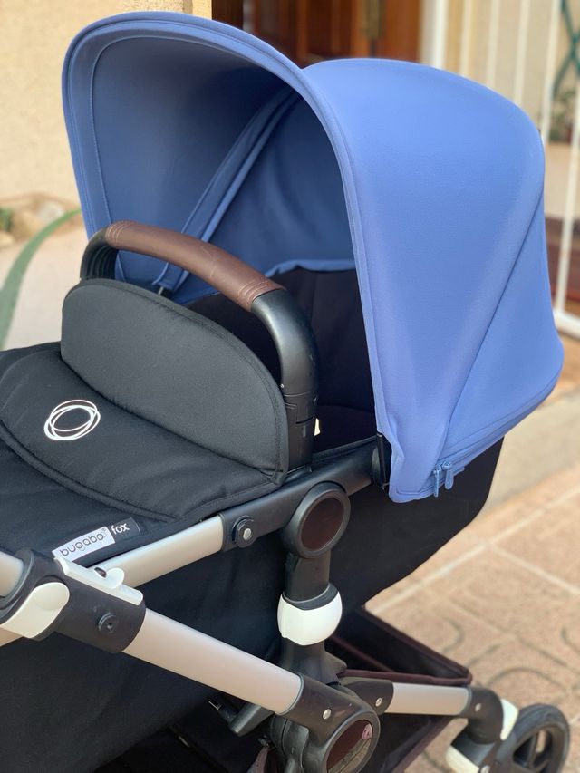 Detalles del productoCarro Bugaboo Fox en color azul y negro, con capazo incluido.