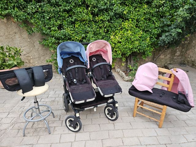 Detalles del productoSe vende carrito gemelares Bugaboo, u Incluyen capotas y asientos, un capazo y cesta. También recambio de cuero sin estrenar y plásticos de lluvia para ambas sillas.
