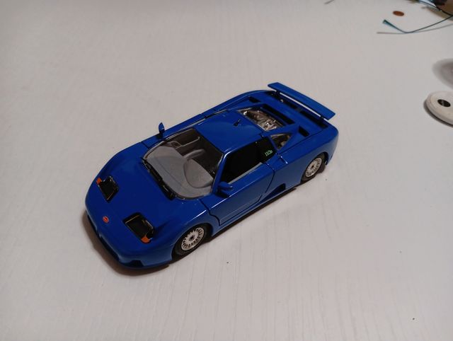 Detalles del productoEspectacular coche de juguete a escala 1:24. Es un modelo Bugatti EB110 azul, en perfecto estado. Burago.