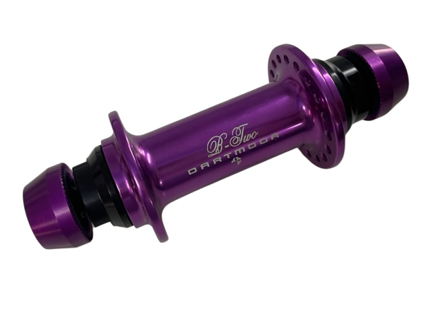 Buje delantero Dartmoor B-two de color purpura con eje hembra de 10mm 3/8 para 36 radios. COLOR Purpura EJE 10mm Hembra MATERIAL Aluminio