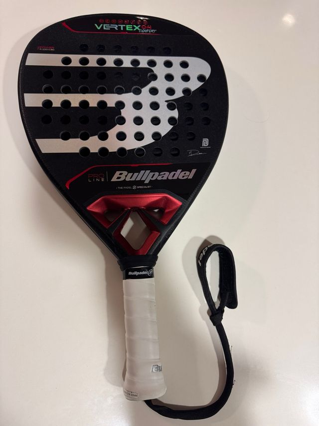 Pala en muy buen estado, con poco uso. Modelo de gama alta Bullpadel Vertex 04, perfecta para jugadores que buscan potencia sin perder control.