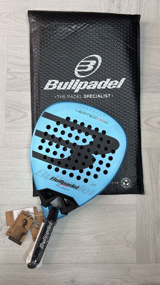 Pala de pádel Bullpadel Vertex 05 Woman en color azul. - Diseño con acabado mate. - Incluye funda protectora. - Logo de Bullpadel en la cara y el puño.