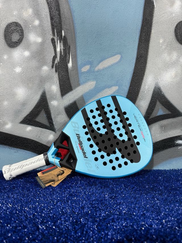 Detalles del productoPala de pádel Bullpadel Vertex 05 Woman, modelo de Delfi Brea. Diseñada con un acabado en color azul y detalles en negro.