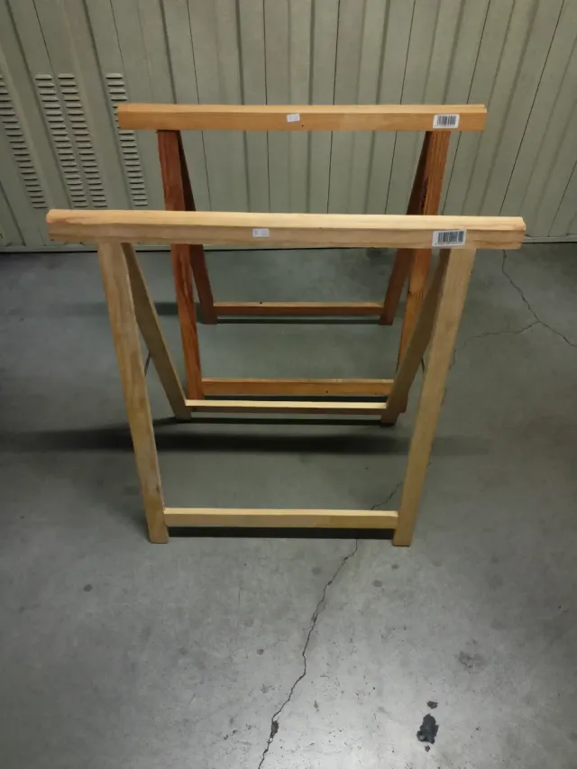 Detalles del productoPar de burriquetas de madera, ideales para trabajos de taller o bricolaje.