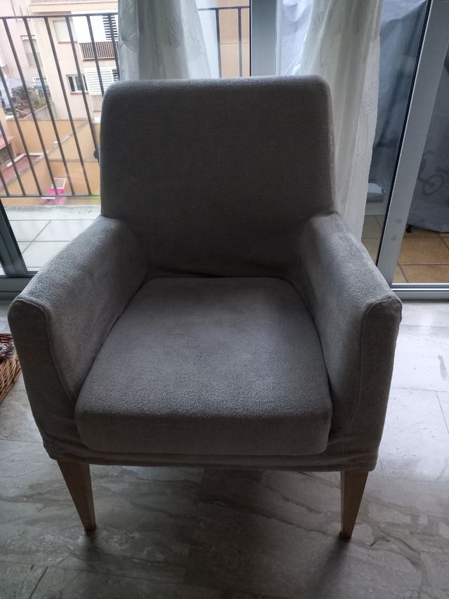 Detalles del productoButaca pequeña de color crudo. el ancho es de 53 a 64 cm porque por delante es mas ancho. la altura desde los brazos es de 61 cm y des del respaldo 85cm. Medidas del producto