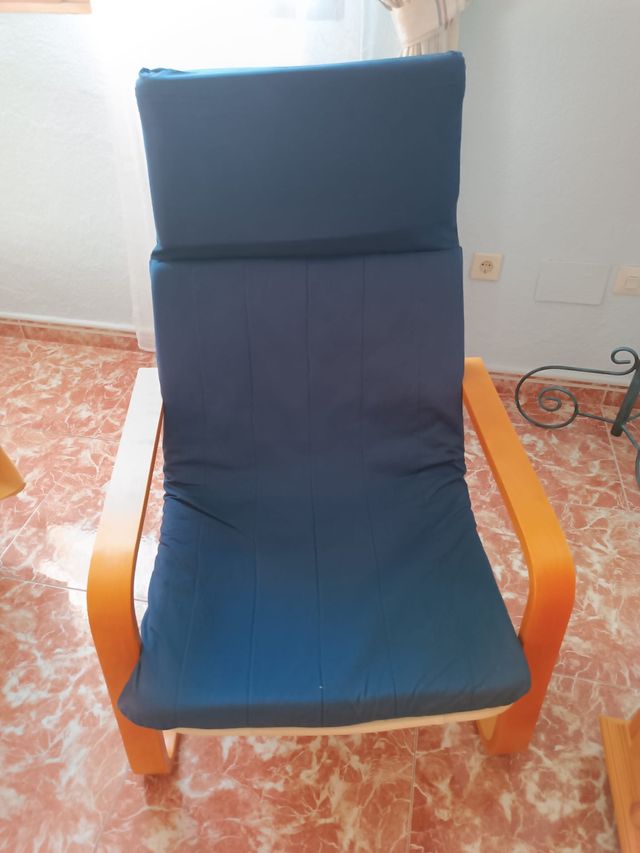 Butaca de madera con funda de color azul en perfecto estado Entrega en ALMERÍA