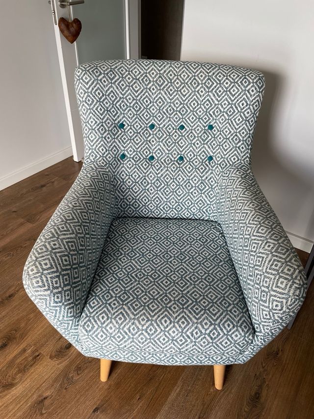 Como nuevo · Beige y Verde azulado · Tela y Madera