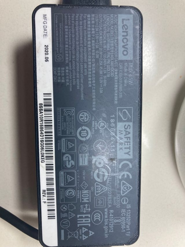 Detalles del productoC53 - CARGADOR PORTATIL LENOV0 . Cargador de portátil LENOV 20 Voltios. 2,25 Amp. . Voltaje comprobado, en perfecto estado de funcionamiento. 45W