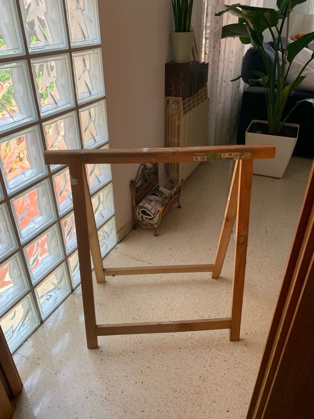 Caballete de madera, ideal para trabajos o exposiciones. - Estructura robusta de madera. - Diseño plegable para fácil almacenamiento y transporte.