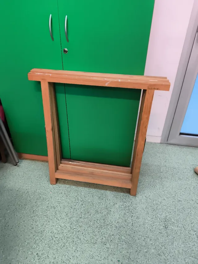 Caballete de madera con un diseño sencillo y funcional. - Estructura de madera. - Ideal para exhibición o como soporte.