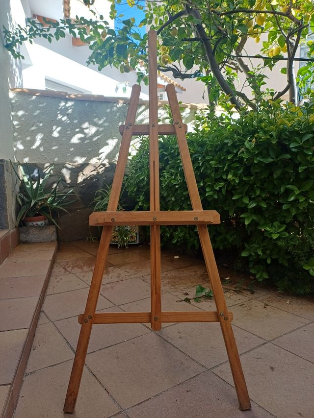 Caballete de madera, ideal para artistas y estudiantes. Es plegable y fácil de transportar. - Material: Madera. - Diseño trípode. - Altura: 115 cm